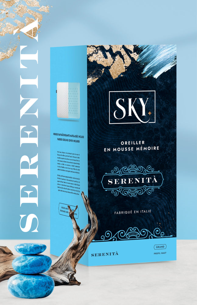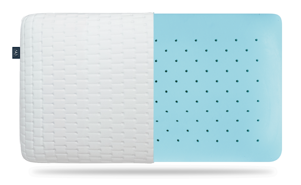 Oreiller viscoélastique avec structure perforée pour une aération maximale. Profil haut pour un soutien ferme et enveloppant, idéal pour les dormeurs latéraux.